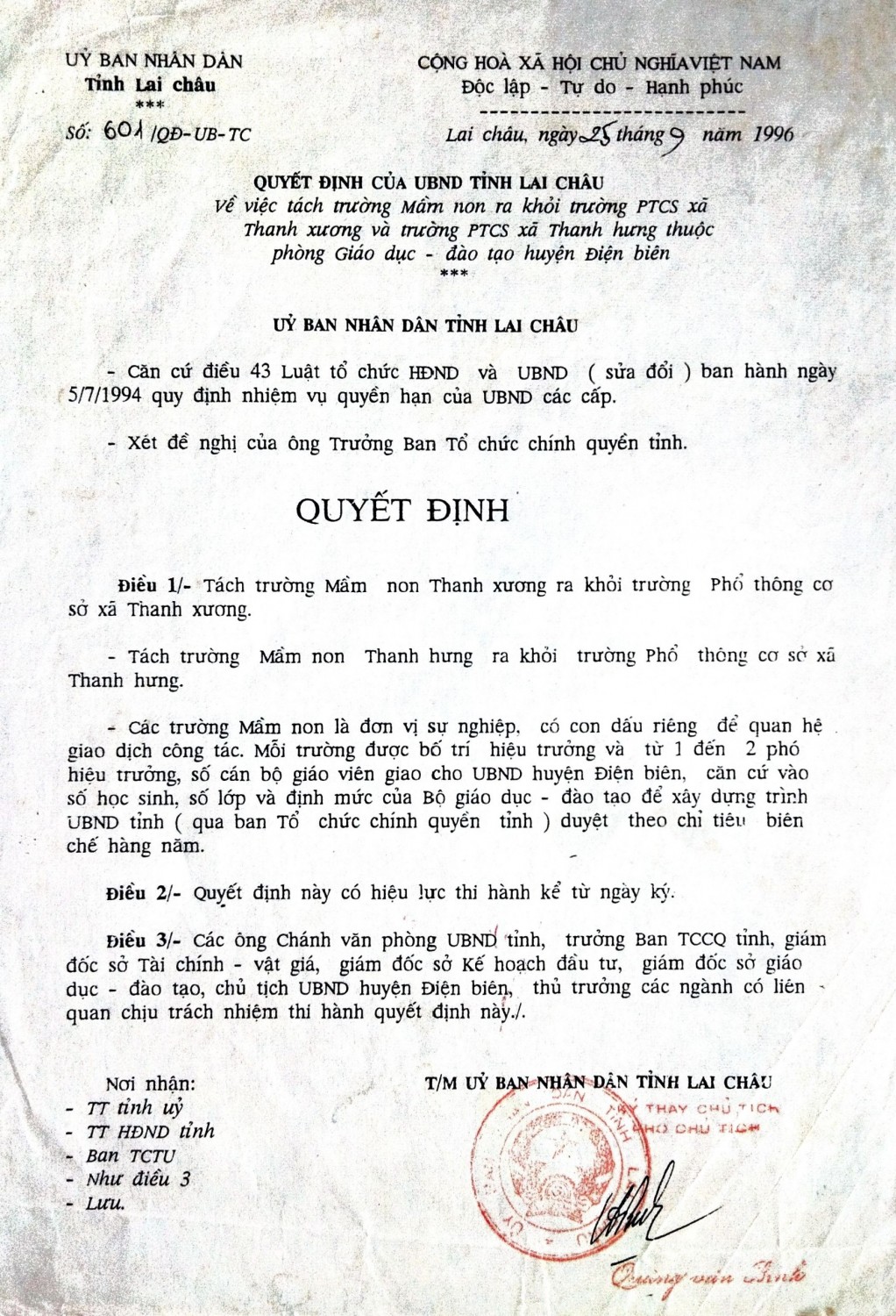 Công khai Quyết định thành lập trường