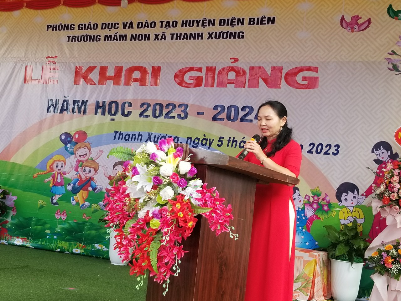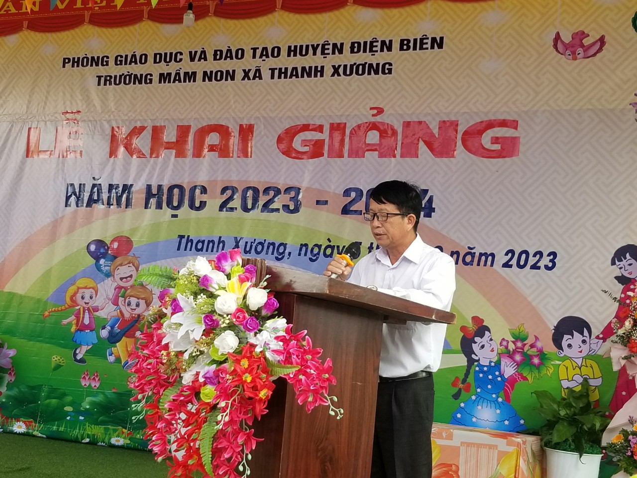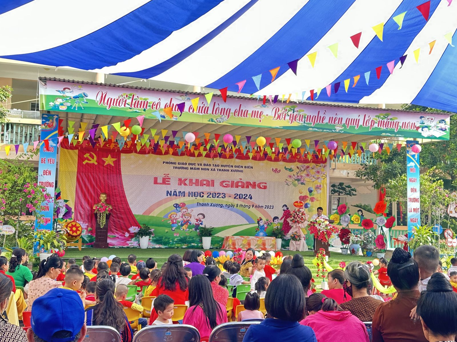 Đến dự lễ khai giảng với nhà trường có đồng chí Cao Thị Tuyết Lan – Uỷ viên Ban Thường vụ Tỉnh ủy, Bí thư Huyện ủy, Chủ tịch HĐND huyện Điện Biên, đồng chí Đặng Thị Ngọc Hà – Phó trưởng phòng GD&ĐT huyện Điện Biên cùng các đồng chí đại biểu đại diện các phòng ban huyện Điện Biên. Đồng chí Lò Văn Chung – Phó bí thư thường trực Đảng ủy xã Thanh Xương, các đồng chí đại diện đơn vị kết nghĩa Đại đội Công binh C17 Bộ chỉ huy quân sự tỉnh Điện Biên; Đại diện ngân hàng VietinBank, doanh nghiệp Quảng cáo Hải Nam, đại diện Chi nhánh xăng dầu petrolimex Phường Nam Thanh, Ban đại diện cha mẹ học sinh của trường và các bậc phụ huynh đến chúc mừng, động viên các cô giáo, các cháu học sinh nhân dịp ngày khai giảng.