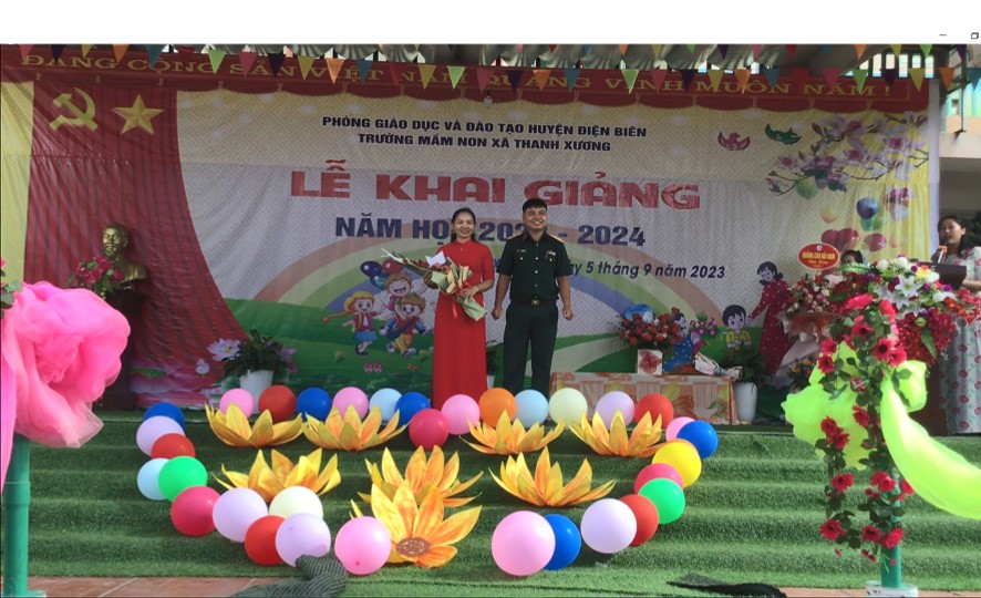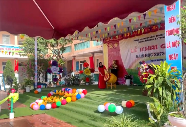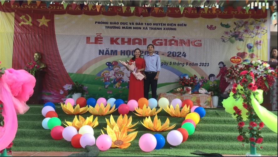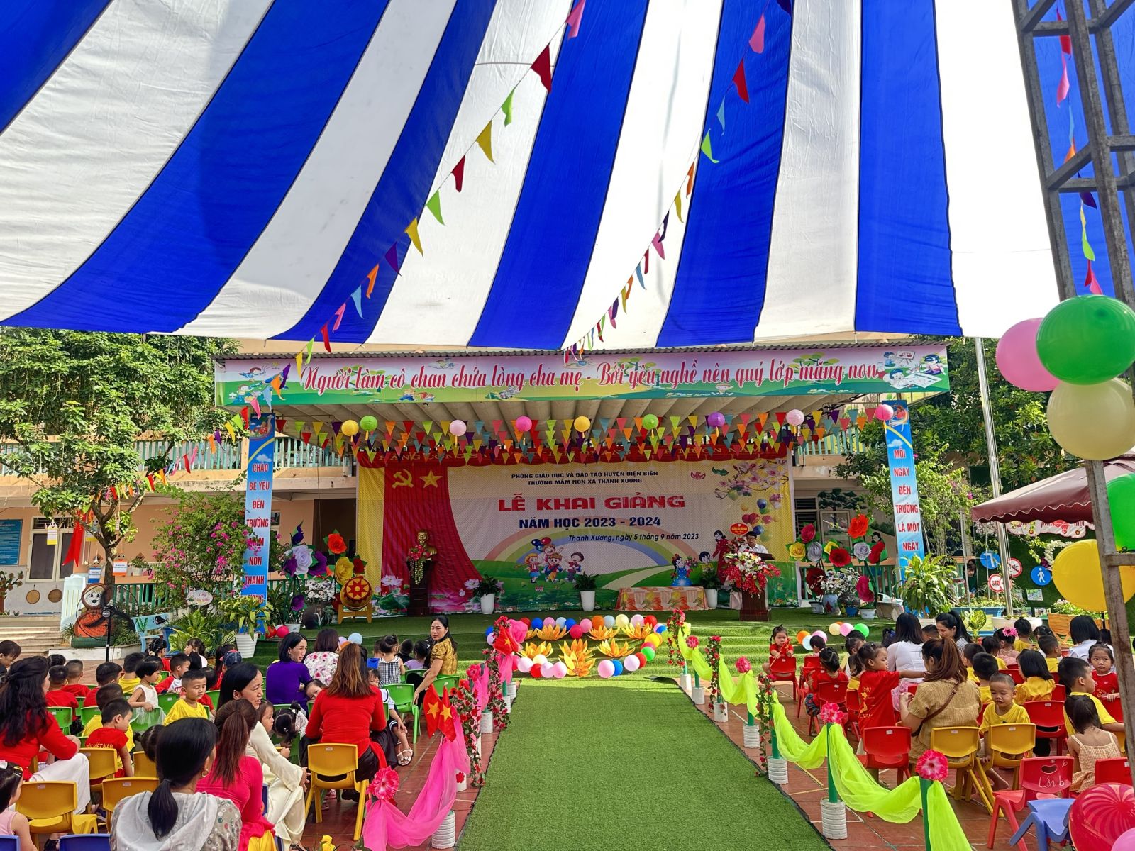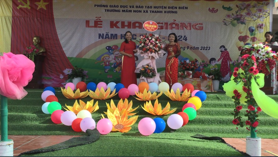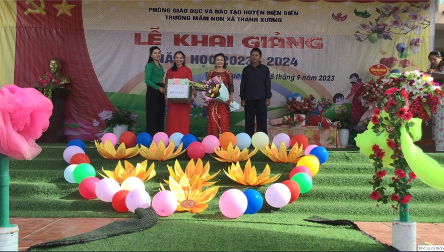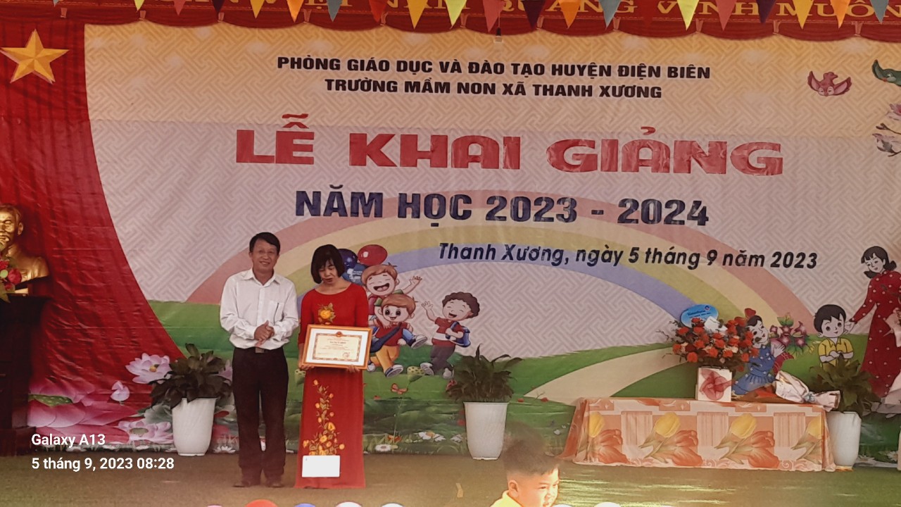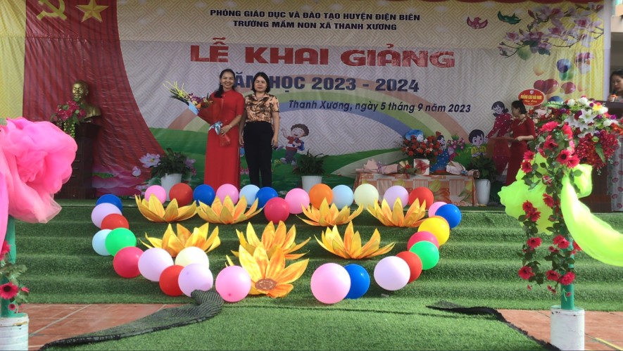 Cùng trong buổi lễ khai giảng, tập thể nhà trường đã được các đồng chí lãnh đạo Ủy ban nhân dân huyện, xã Thanh Xương, các đơn vị kết nghĩa, doanh nghiệp, cha mẹ trẻ tặng hoa, động viên chúc mừng nhà trường. Ban thi đua nhà trường đã thay mặt các cấp trao khen thưởng cho tập thể nhà trường và các cán bộ, giáo viên đạt thành tích xuất sắc trong năm học 2022-2023.