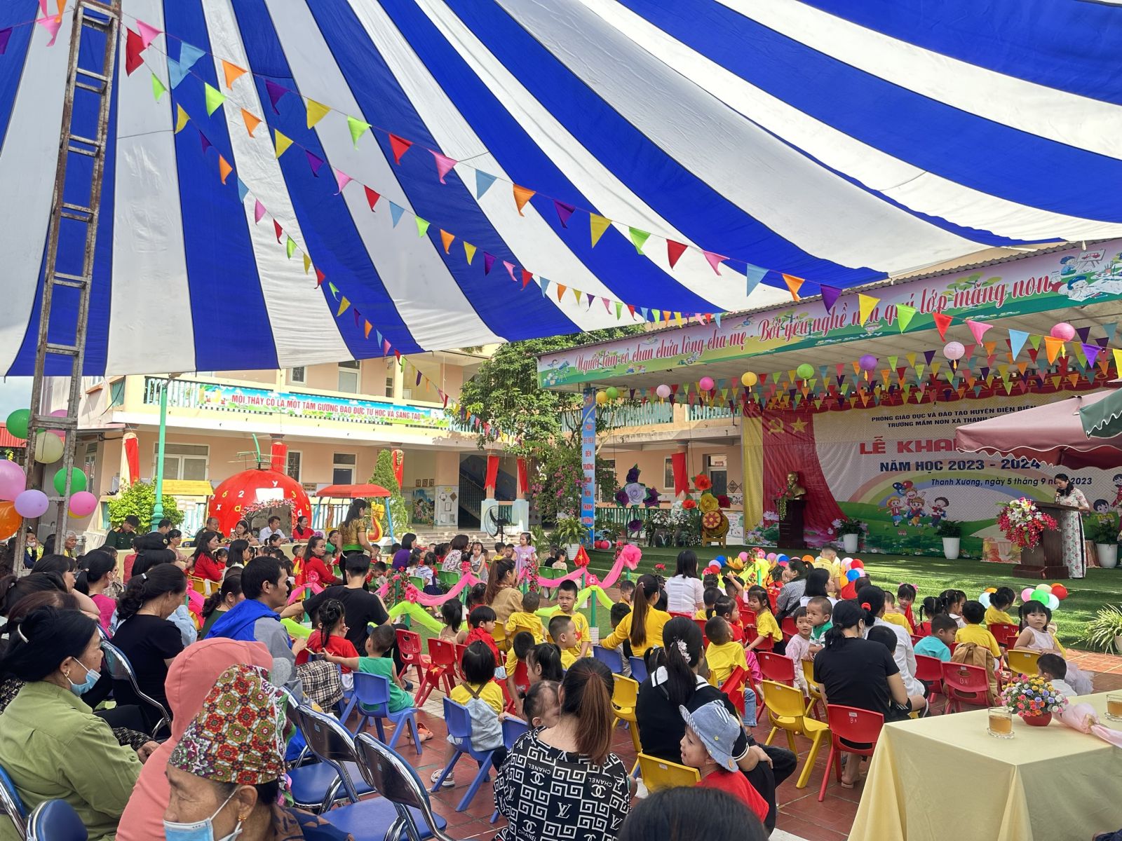 Sau những tháng hè nghỉ ngơi thư giãn, tiếng trống trường lại rộn lên báo hiệu năm học mới bắt đầu. Mùa thu sang với bao ánh mắt hiền hoà của các cô giáo chào đón các bé thân yêu tới trường. Sáng ngày mùng 05 tháng 9 năm 2023 trường Mầm non xã Thanh Xương long trọng tổ chức Lễ khai giảng năm học mới 2023 – 2024 với không khí vui tươi, phấn khởi của ngày khai giảng - Ngày hội toàn dân đưa trẻ đến trường. Theo hướng dẫn của Bộ Giáo dục và Đào tạo, lễ khai giảng năm học mới được nhà trường tổ chức gọn nhẹ, trang trọng, ý nghĩa, ngoài phần “lễ” chương trình khai giảng được tổ chức thêm phần “hội” với một chương trình văn nghệ chào mừng và các trò chơi vui nhộn dành cho các bé cùng trải nghiệm, mang đến cho cô và trò một tâm thế vui tươi bước vào năm học mới.