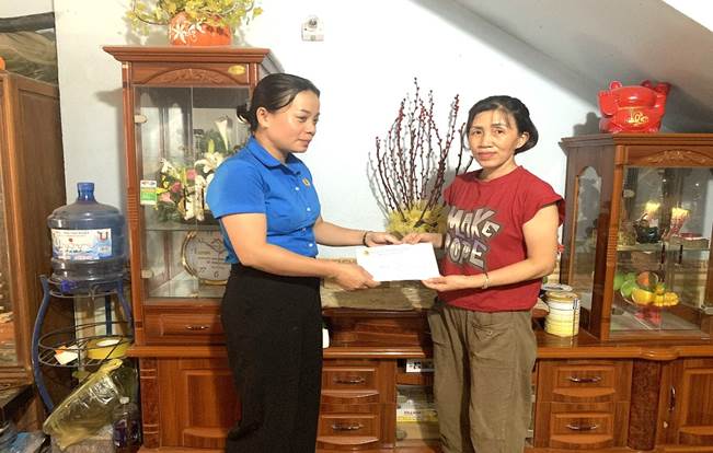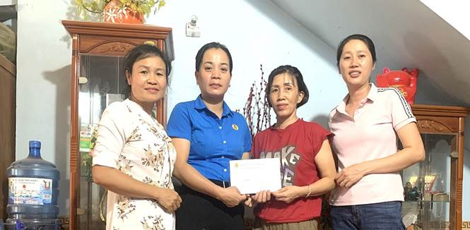 Đ/c Nguyễn Thị Tâm – Phó chủ tích LĐLĐ huyện Điện Biên tặng quà cho đoàn viên CĐ ốm đau bệnh hiểm nghèo của CĐCS trường MN xã Thanh Chăn