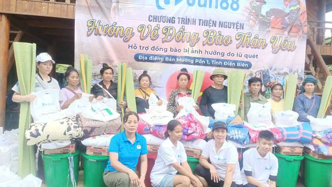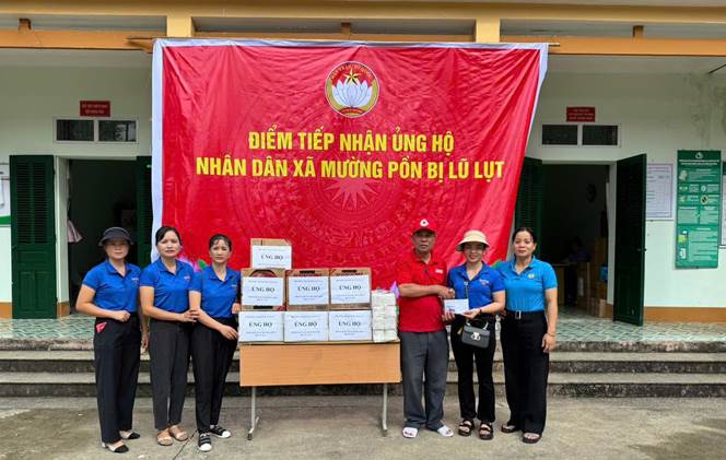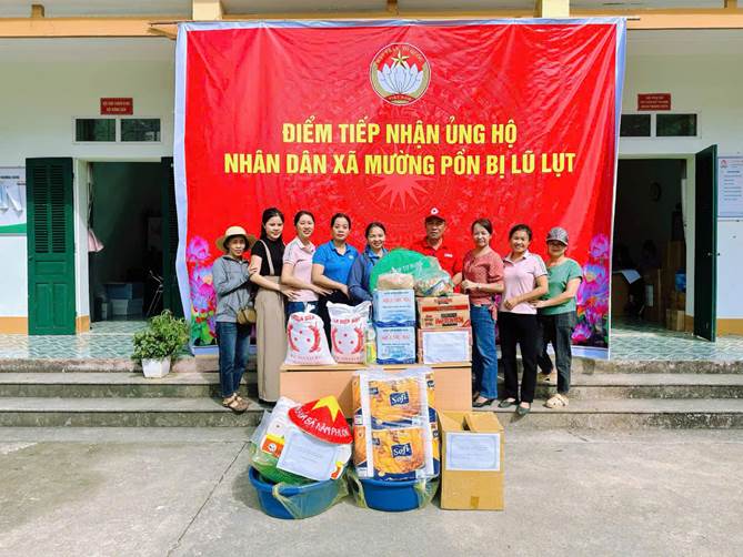 Tặng quà hỗ trợ bà con xã Mường Pồn bị ảnh hưởng lũ lụt.