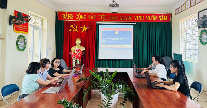 Công đoàn viên CĐCS trường MN xã Thanh Xương tham gia Hội thi trực tuyến “Tìm hiểu Nghị quyết Đại hội Công đoàn Nhiệm kỳ 2023-2028” do LĐLĐ tỉnh, LĐLĐ huyện phát động.