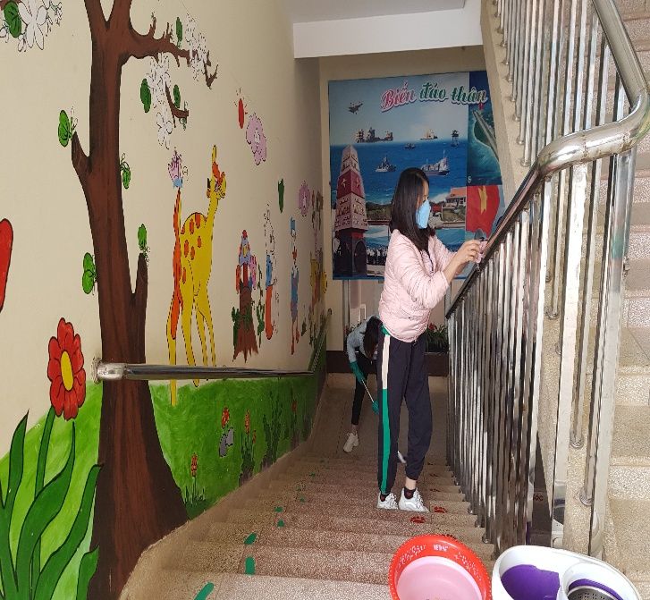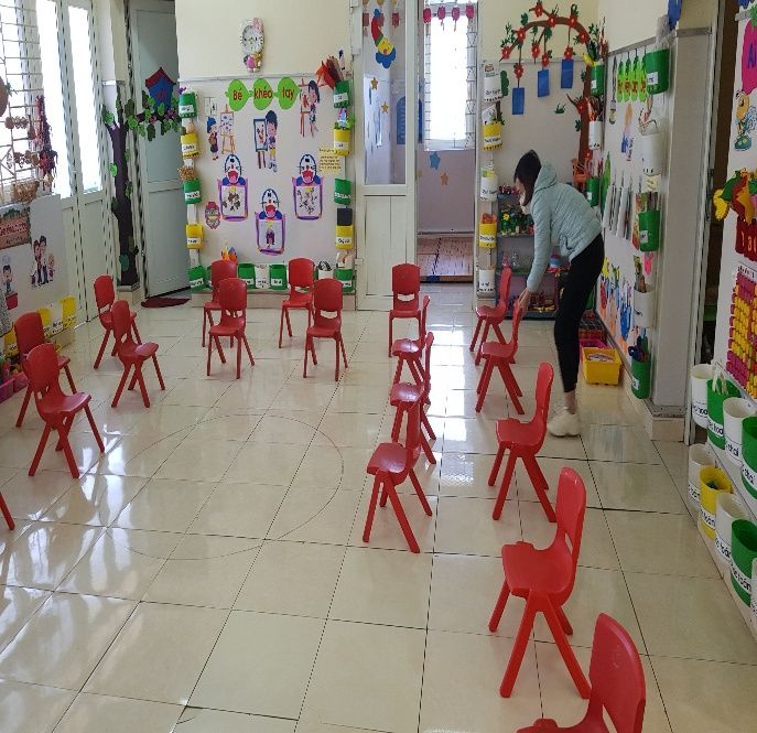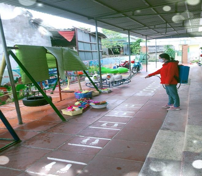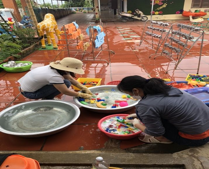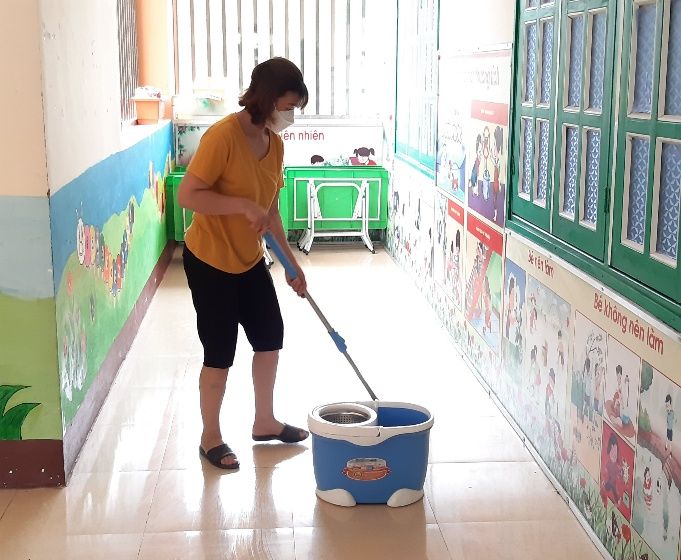100% giáo viên các lớp đã tích cực dọn dẹp vệ sinh, lau rửa đồ dùng đồ chơi chuẩn bị môi trường sạch để đón trẻ tới trường.