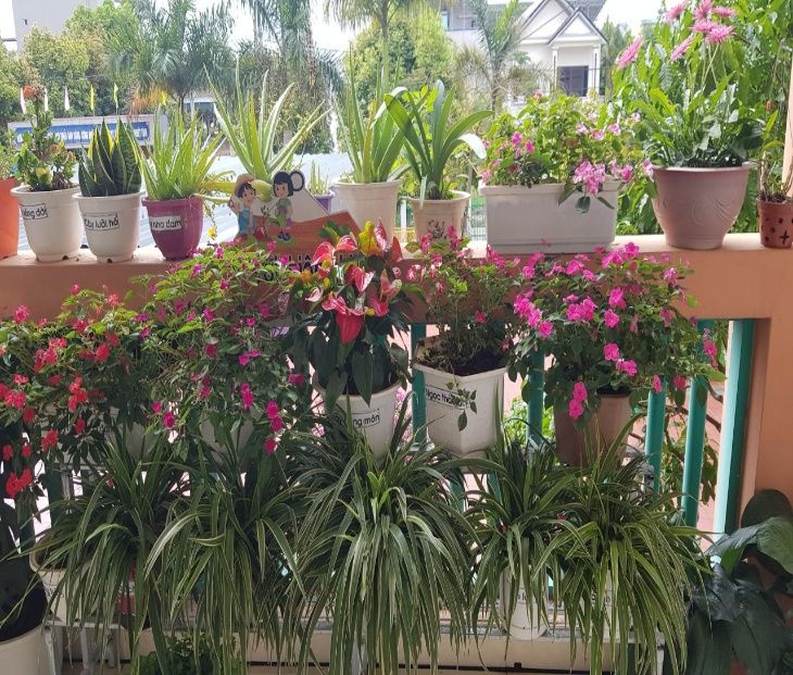 Tích cực lao động chăm sóc vườn rau, vườn hoa cây cảnh chuẩn bị tốt nguồn rau sạch cho trẻ ăn bán trú.