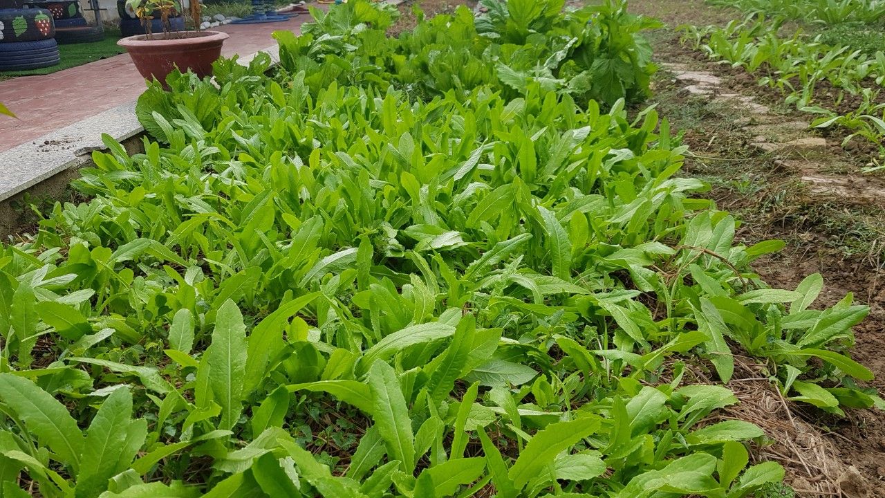 Hình ảnh lao động chăm sóc vườn rau xanh