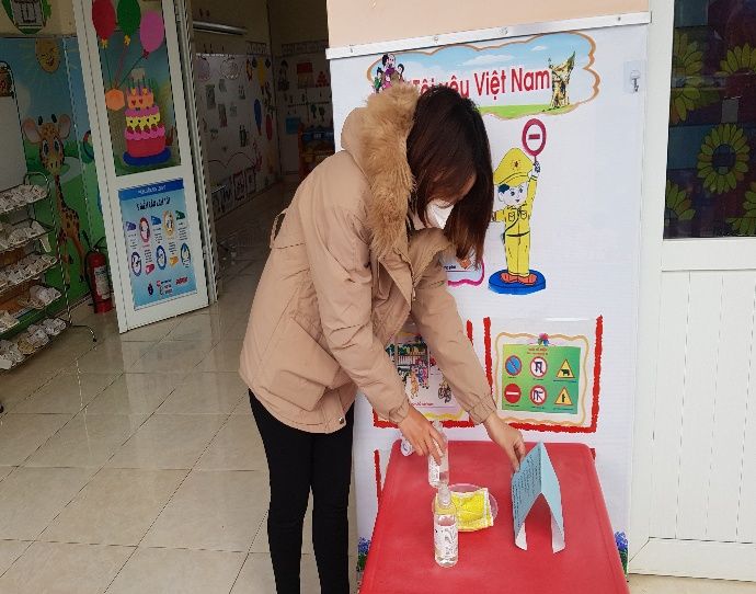 Công tác chuẩn bị nước sát khuẩn, khan lau tay cho trẻ