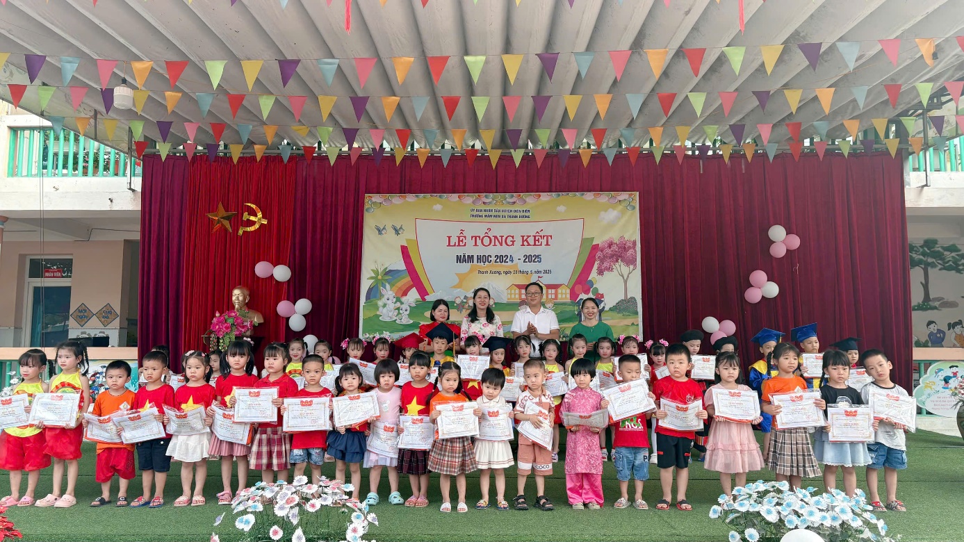 Sáng ngày 28 tháng 5 năm 2025, trong không khí rộn ràng, ấm áp và đầy xúc cảm, Trường Mầm non xã Thanh Xương đã long trọng tổ chức Lễ tổng kết năm học 2024–2025. Buổi lễ không chỉ là dịp nhìn lại chặng đường đã qua mà còn là khoảnh khắc thiêng liêng để tri ân, để yêu thương và để cùng nhau khép lại một năm học với biết bao cố gắng, nỗ lực và thành công.