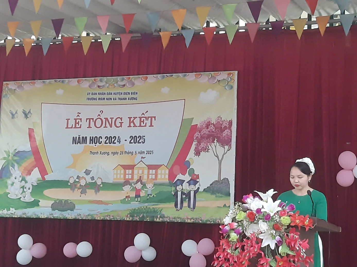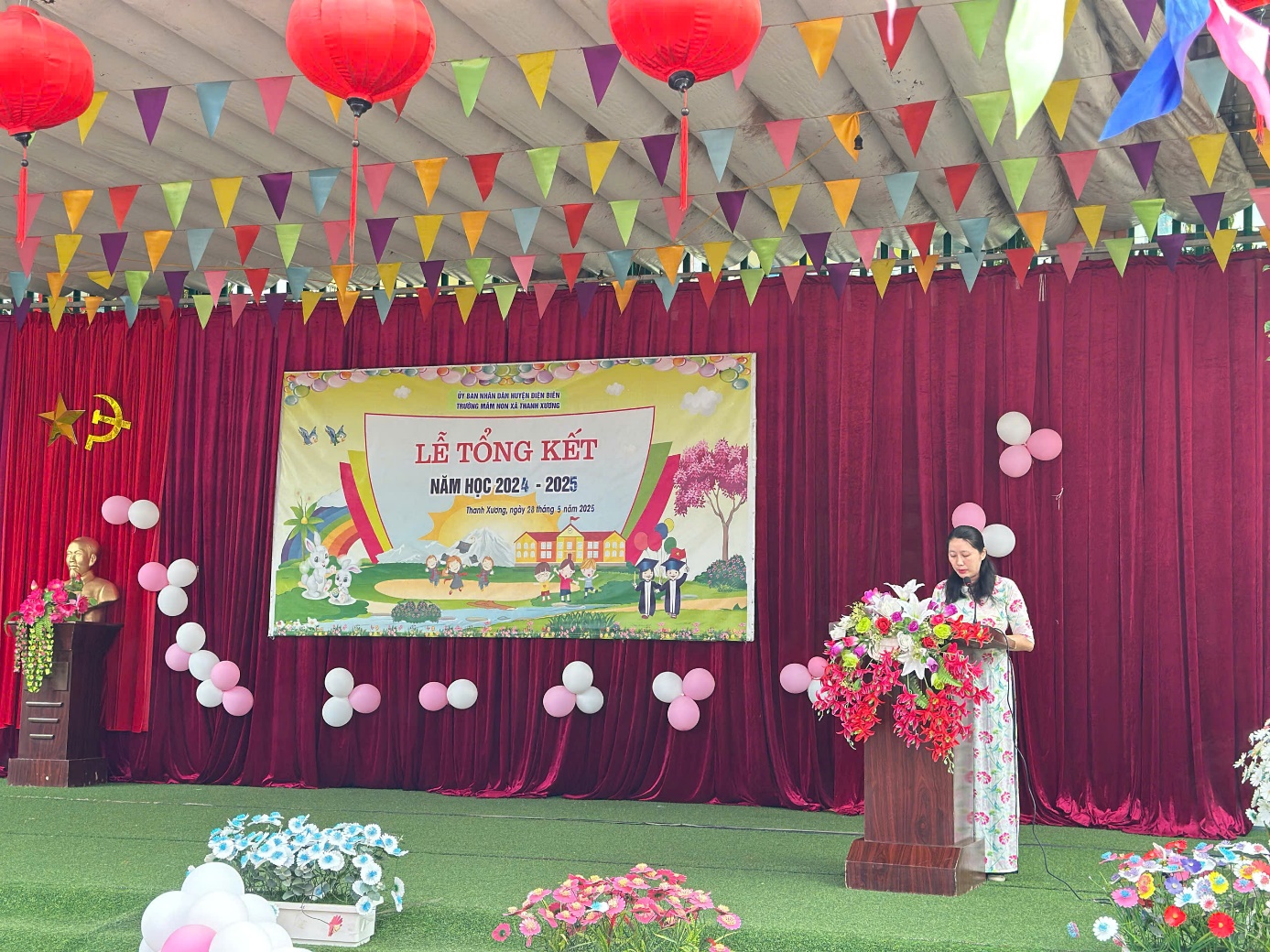 Phát biểu tại buổi lễ, đồng chí Lò Văn Chung – Phó Bí thư Thường trực Đảng ủy xã thay mặt cho cấp ủy, chính quyền địa phương đã ghi nhận, biểu dương những thành tích mà nhà trường đạt được trong năm học vừa qua, đồng thời cũng giao nhiệm vụ cho nhà trường cùng với các bậc hụ huynh đảm bảo an toàn tuyệt đối cho học sinh và tạo điều kiện cho các cháu được tham gia các hoạt động hè vui vẻ, bổ ích. Đồng chí tin tưởng rằng với tinh thần đoàn kết, trách nhiệm và yêu nghề, trường Mầm non xã Thanh Xương sẽ tiếp tục phát triển vững mạnh trong những năm học tiếp theo.