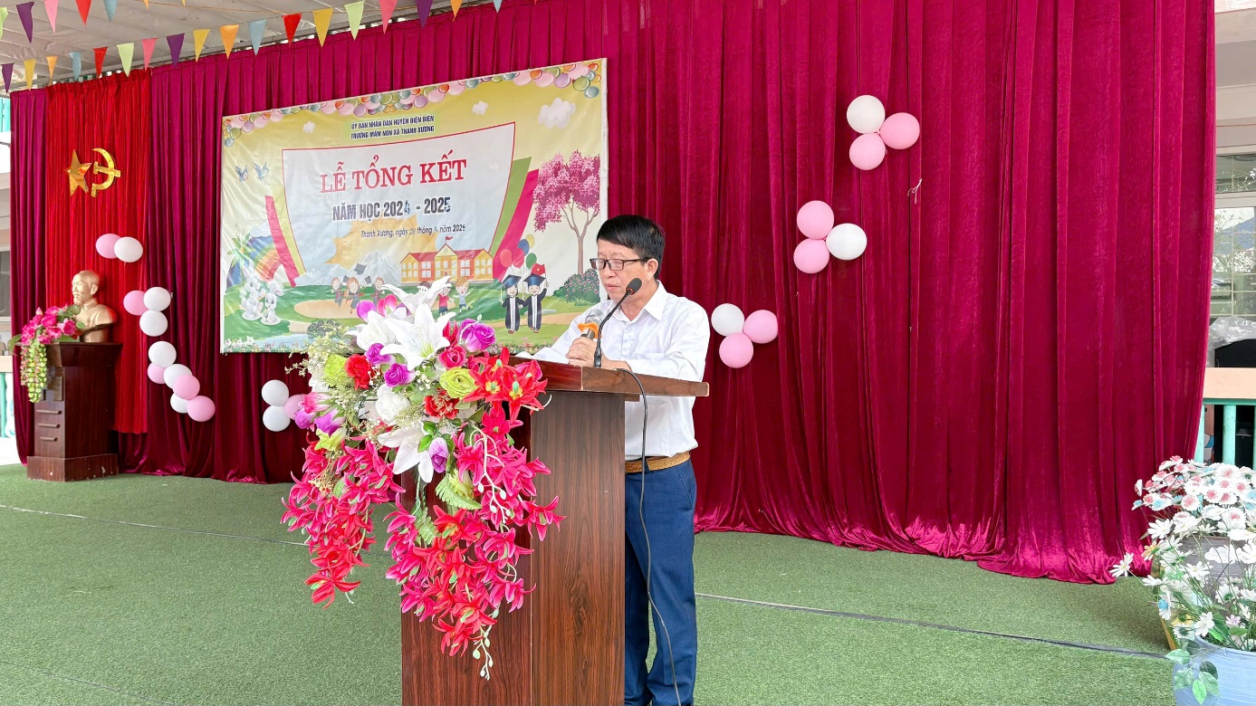 Đ/c Lò Văn Chung – Phó bí thư thường trực đảng ủy xã Thanh Xương phát biểu trong buổi lễ tổng kế năm học 2024-2025.