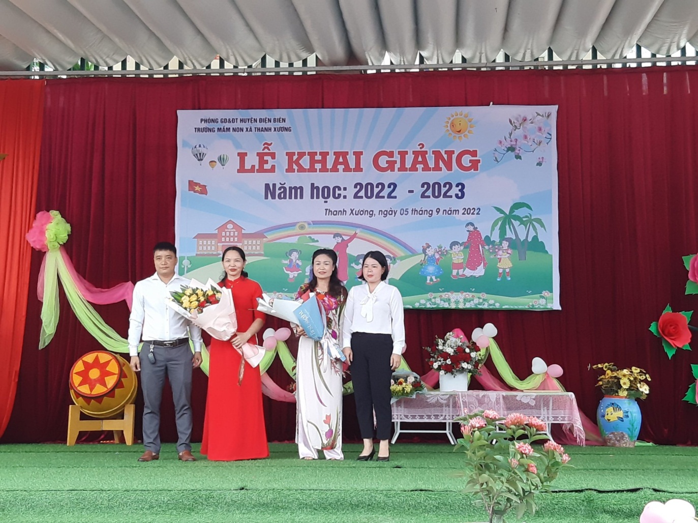 Hòa chung trong không khí tưng bừng phấn khởi của cả nước của ngày khai trường, ngày hội “Toàn dân đưa trẻ đến trường”, sáng ngày 05/9/2022, Trường Mầm non xã thanh Xương đã long trọng tổ chức lễ khai giảng năm học 2022-2023. Đồng chí Lò Văn Chung - Phó Bí thư thường trực đảng ủy xã Thanh Xương đã về dự lễ khai giảng. Tham dự lễ khai giảng còn có đại diện khách mời đơn vị kết nghĩa, các đơn vị trên địa bàn. Đại diện cha mẹ học sinh của trường và của các lớp.