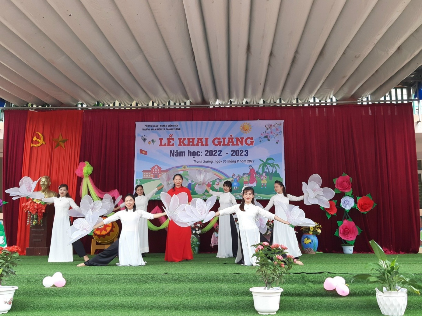 Kết thúc buổi lễ là chương trình văn nghệ tạo không khí vui tươi phấn khởi chào đón năm học mới của cô và trò trường Mầm non Thanh Xương