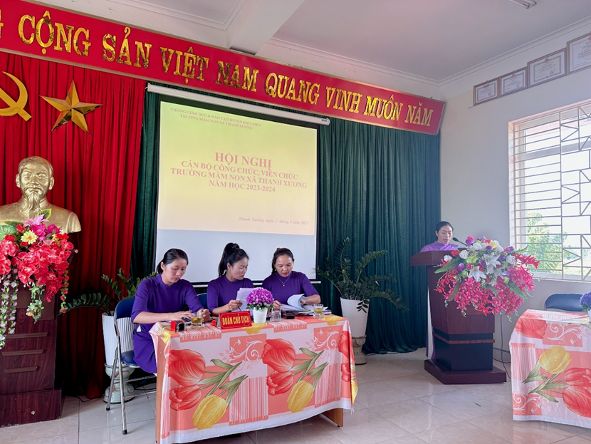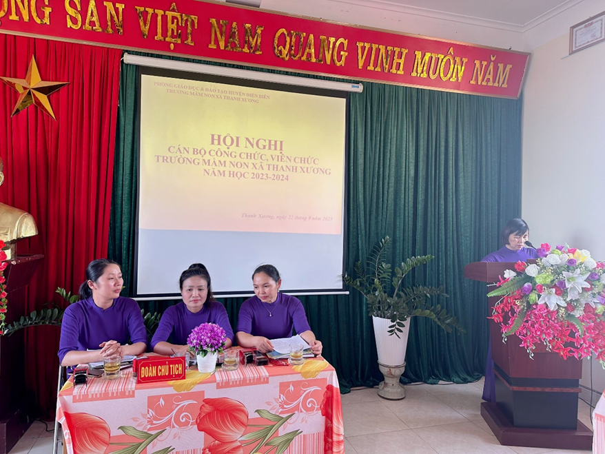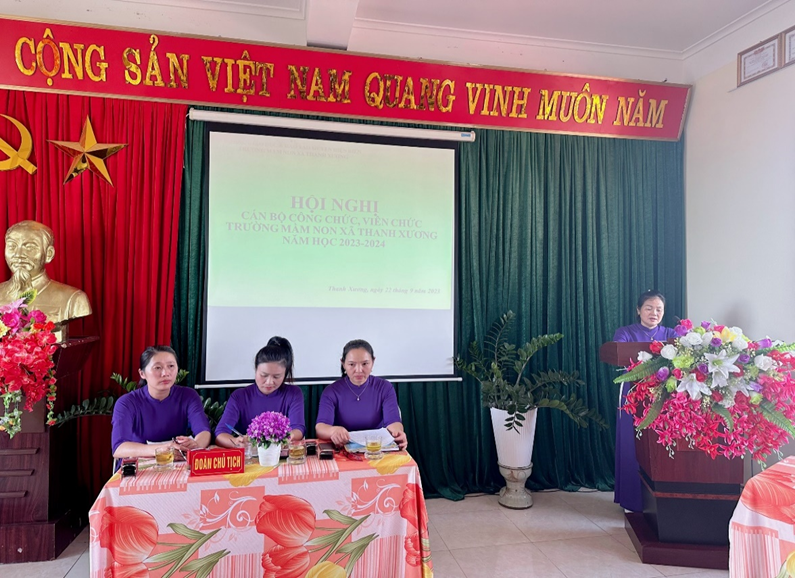 Tham dự Hội nghị có đồng chí Trịnh Thị Huyền – Bí thư chi bộ - Hiệu trưởng nhà trường, đồng chí Phạm Thị Nam Hồng – Phó Hiệu trưởng - Chủ tịch Công đoàn cùng toàn thể các đồng chí cán bộ, viên chức trường mầm non xã Thanh Xương.