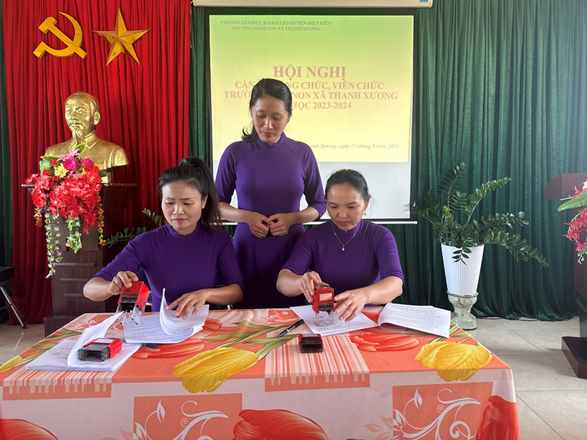 100% cán bộ, viên chức trường mầm non xã Thanh Xương tham gia Hội nghị.nhất trí với bản dự thảo Nghị quyết Hội Nghị.